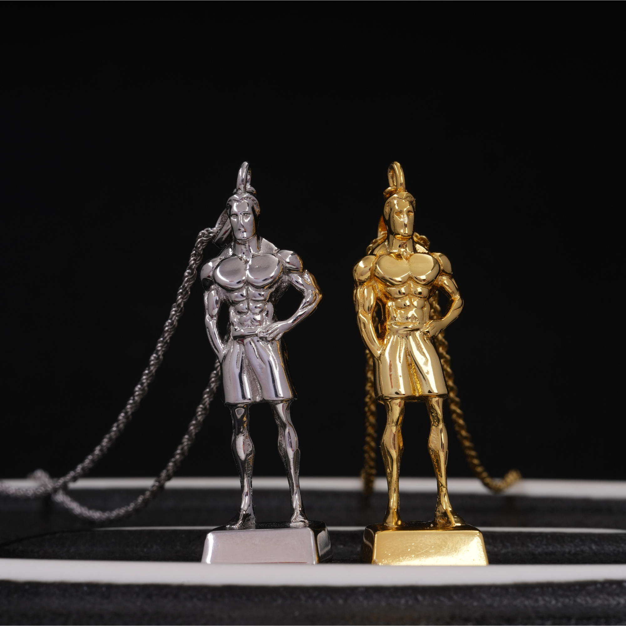 Each Victory Pendant is inspired by the corresponding iconic bodybuilding trophy that symbolizes victory earned through sweat.